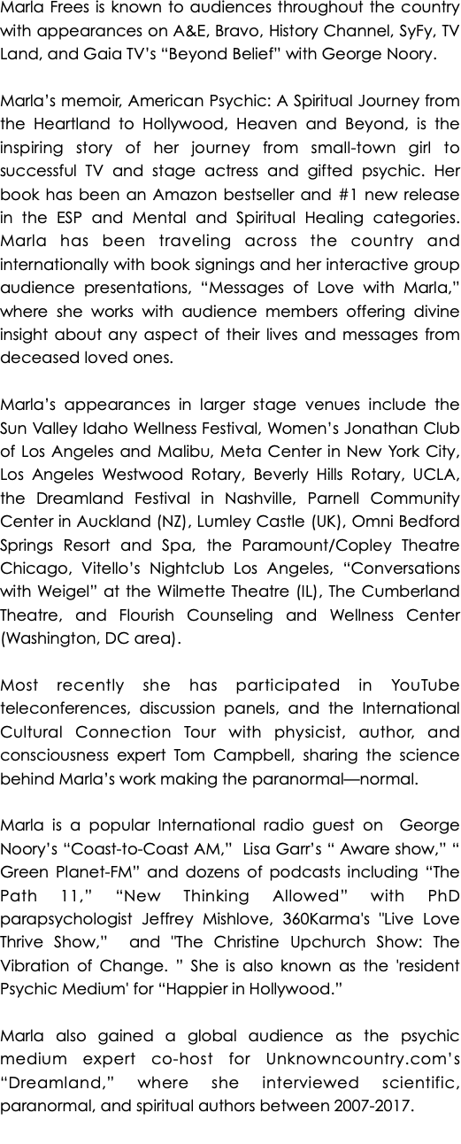national and international mobsters and then landed in Hollywood and balanced sitcoms, spirits, and a stalker. I was on the ride of my life. Dead people, murder, Hollywood heart-throbs, sex, psychic visions, and UFOs were all a part of it. I found myself catapulted and positioned into situations with psychic awareness and messages from deceased loved ones to assist people from all walks of life—including the most skeptical..."